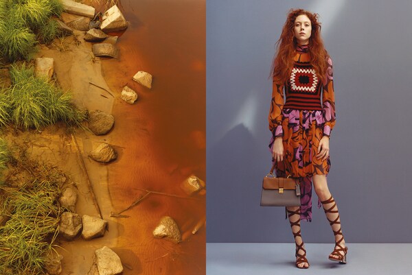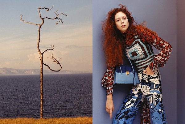 A series of artful diptychs, bringing together fashion portraiture with abstract landscapes, place the Miu Miu woman in a mysterious and intriguing universe – a kaleidoscopic vision of nature and fashion.