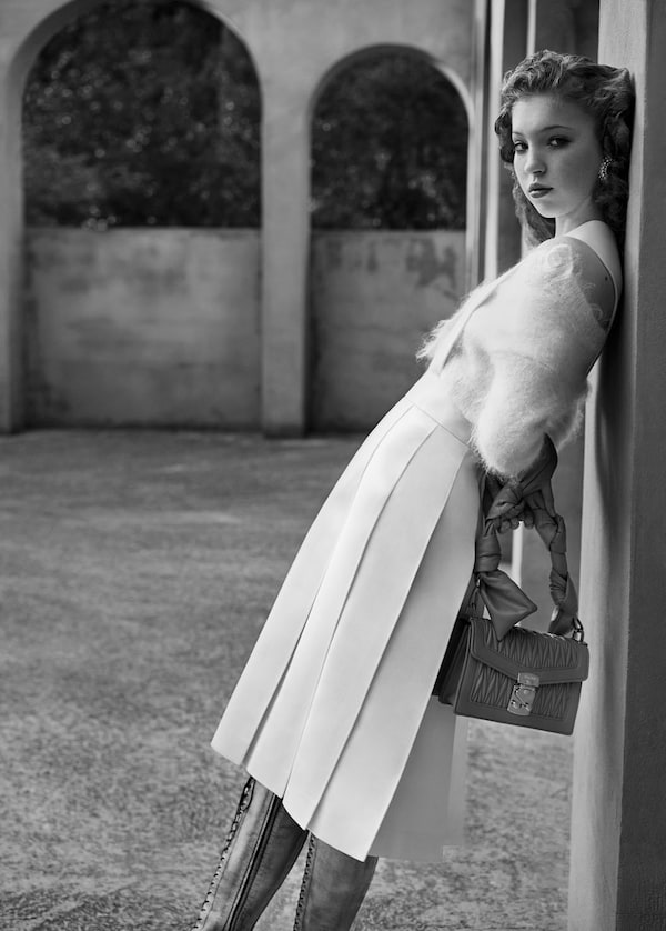 Imagine una colonia de artistas, una colonia en la que solo hay mujeres. Los claustrofóbicos dramas de esta colonia tienen lugar dentro de una propiedad extensa y laberíntica; parte escenario, parte instalación, parte galería, parte hogar. Aquí, los eventos se sugieren, se insinúan y se observan oblicuamente en la campaña primavera/verano 2020 de Miu Miu.