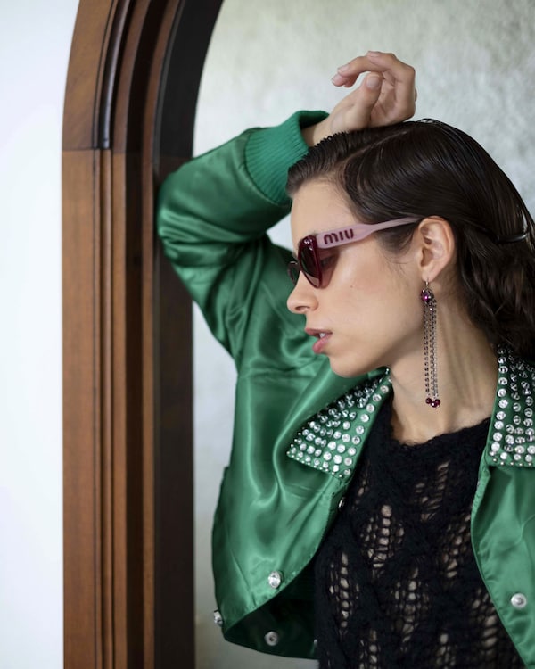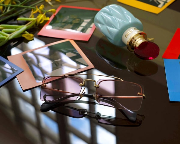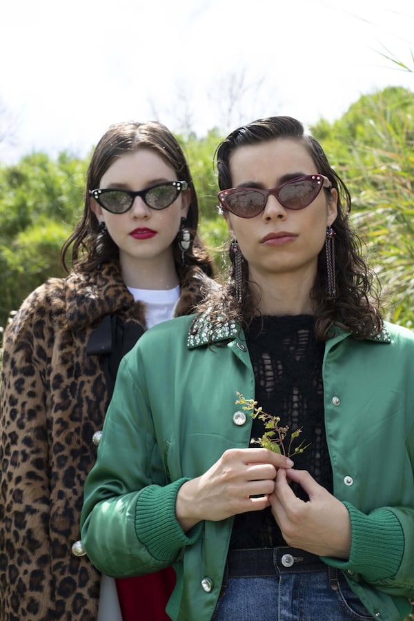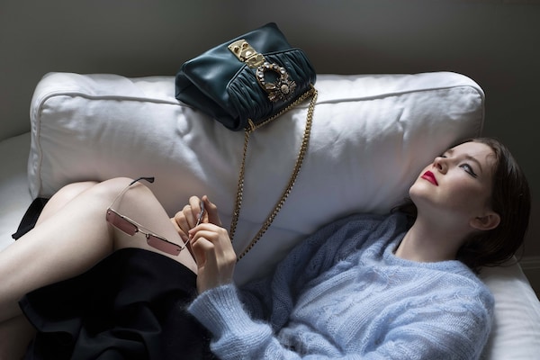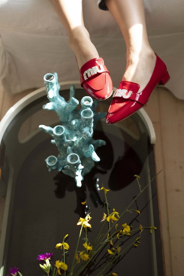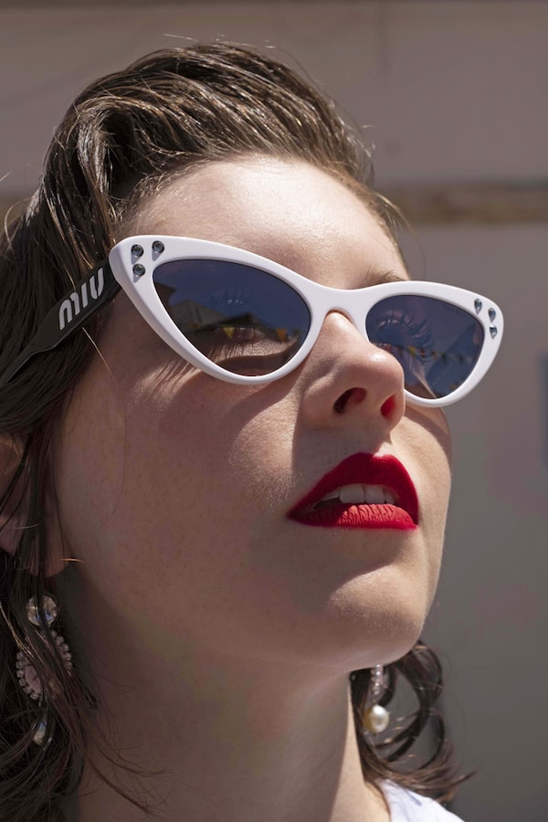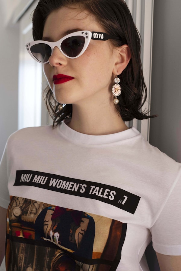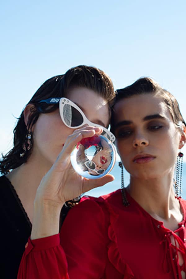 The collection includes accessories with classic charm given a modern twist like the earrings with cameo and crystals and Miu Logo eyewear with an intriguing retro cat-eye silhouette.