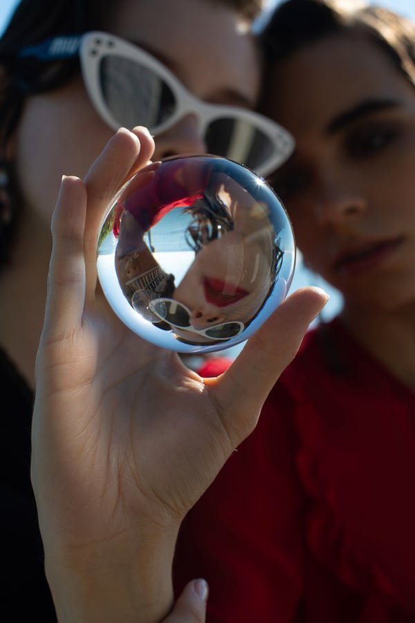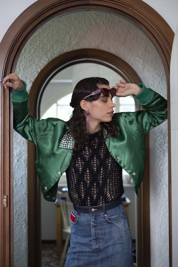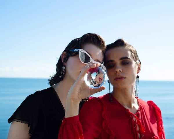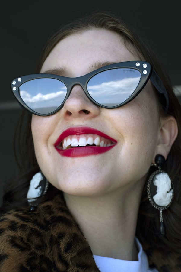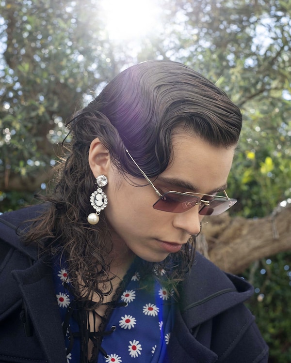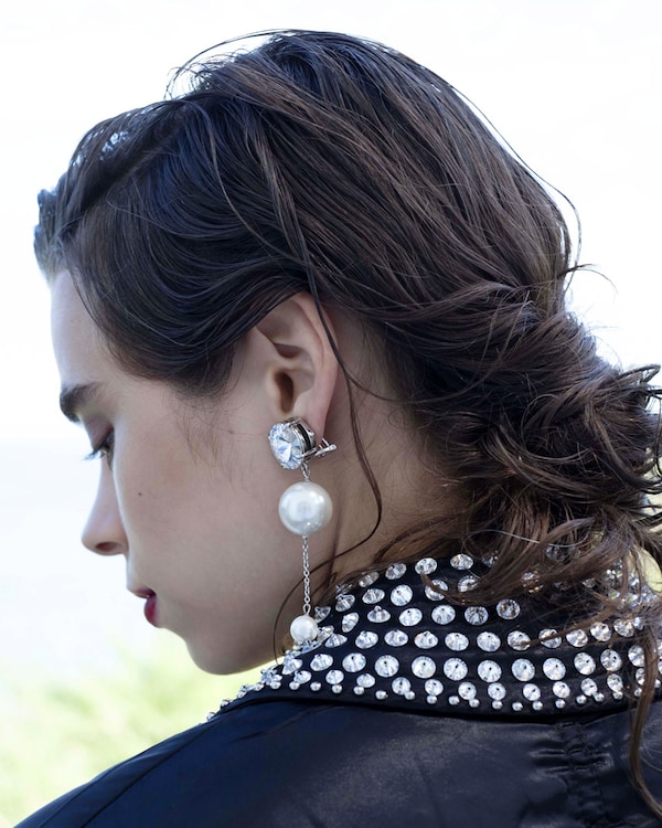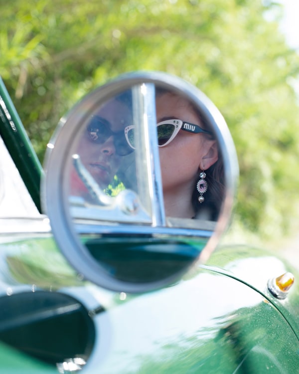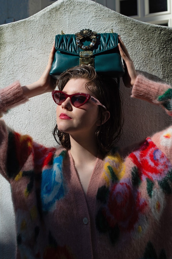 The collection includes accessories with classic charm given a modern twist like the earrings with cameo and crystals and Miu Logo eyewear with an intriguing retro cat-eye silhouette.