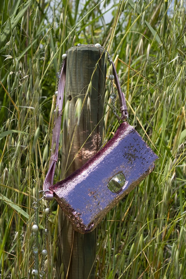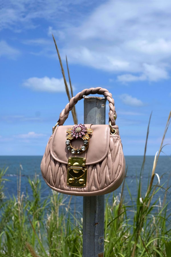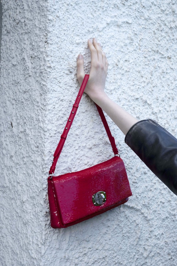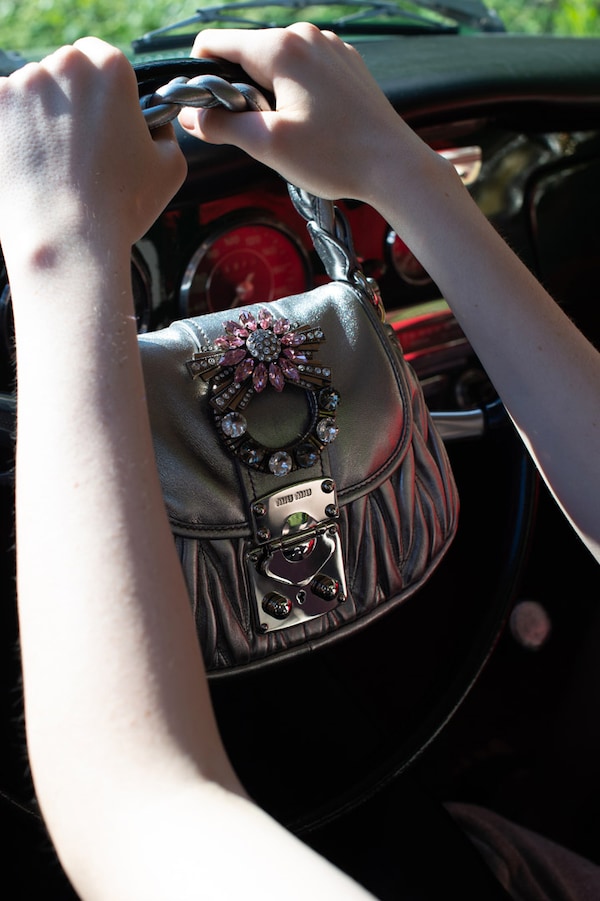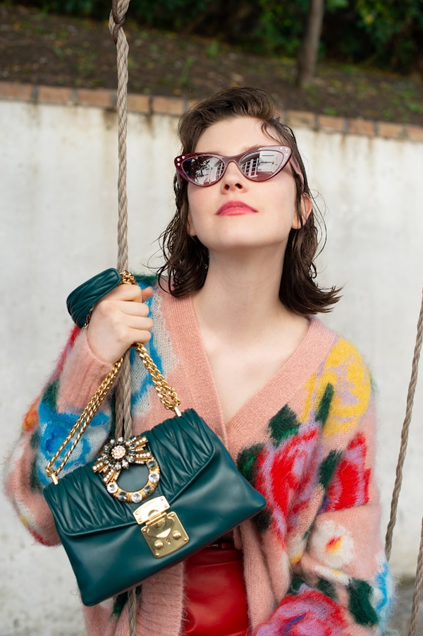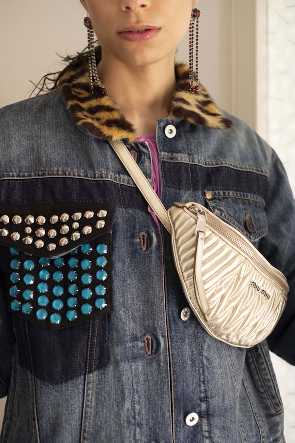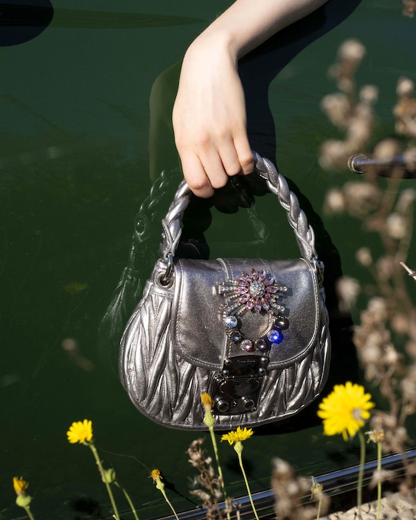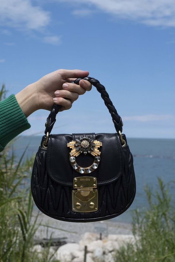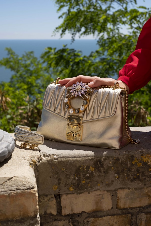 The most emblematic Miu Miu bags are featured, from the Coffer bag embellished with a jewel buckle for Fall/Winter 2018 to the classic line of the Miu Crystal bag decorated with dazzling sequins.