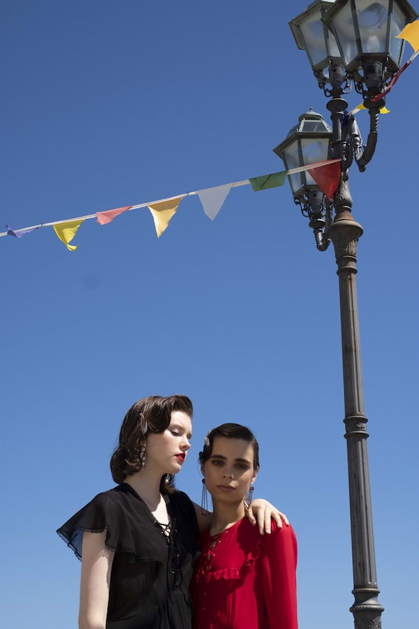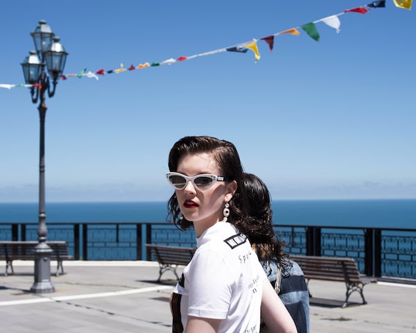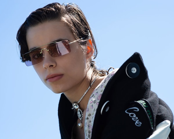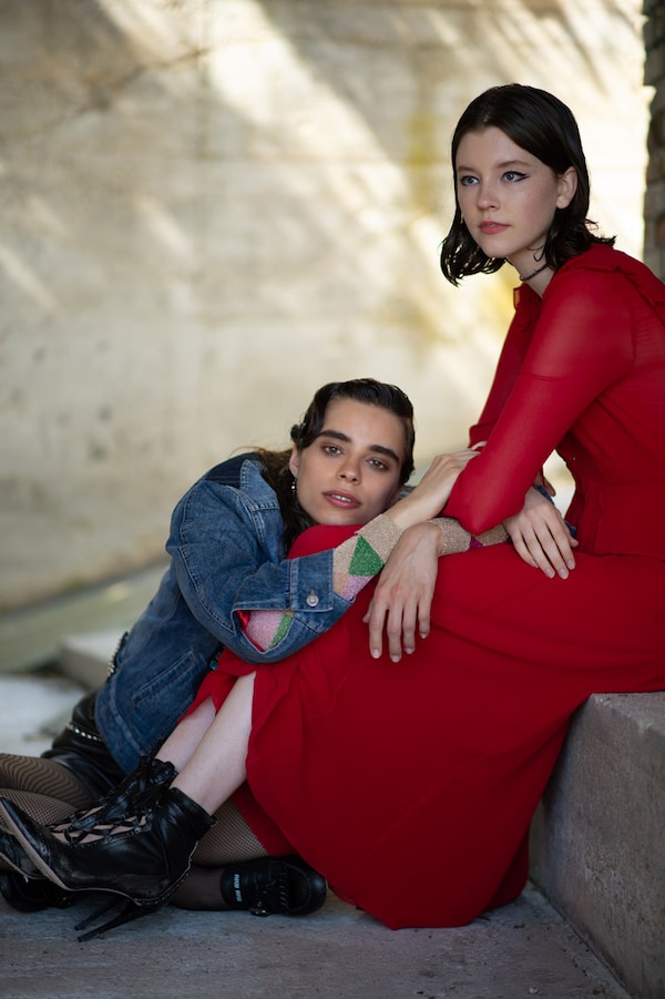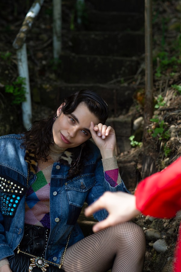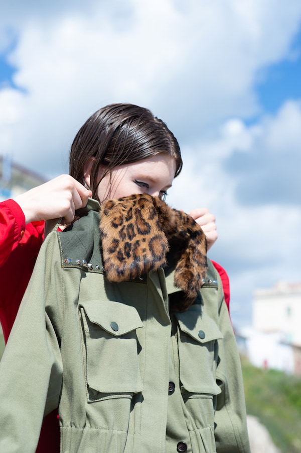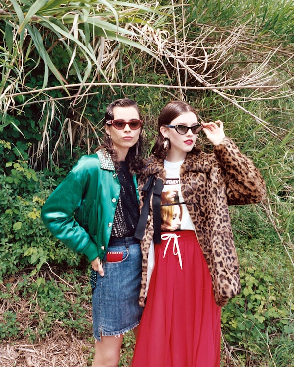 It includes a blend of feminine chiffon dresses with flirty ruffles, T-shirts with colorful prints, denim miniskirts and jackets decorated with patches, studs and animal print inserts and oversized leather biker jackets with cool 'bad girl' appeal.